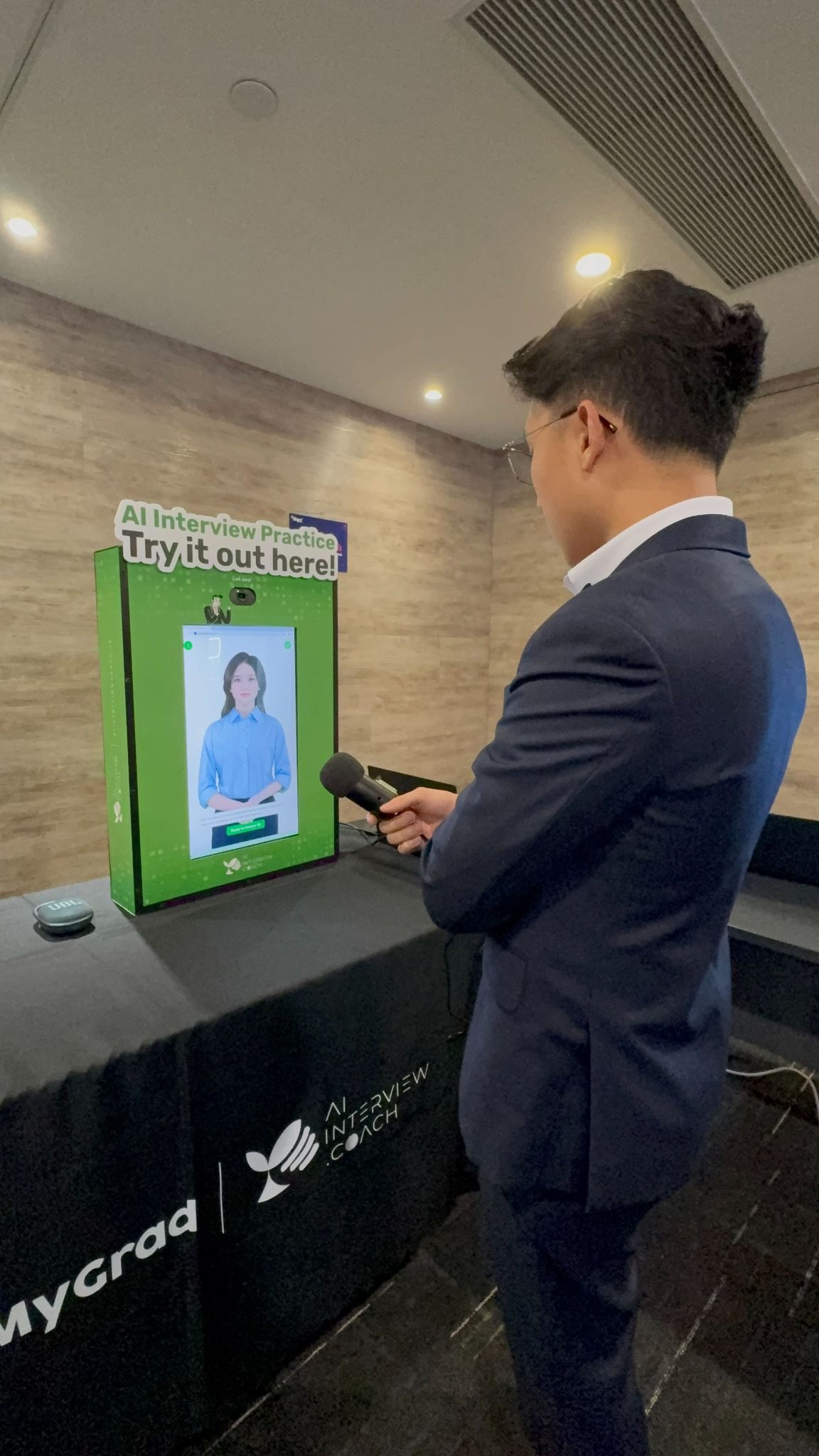 privacy booth ensures confidential speaking practice.
